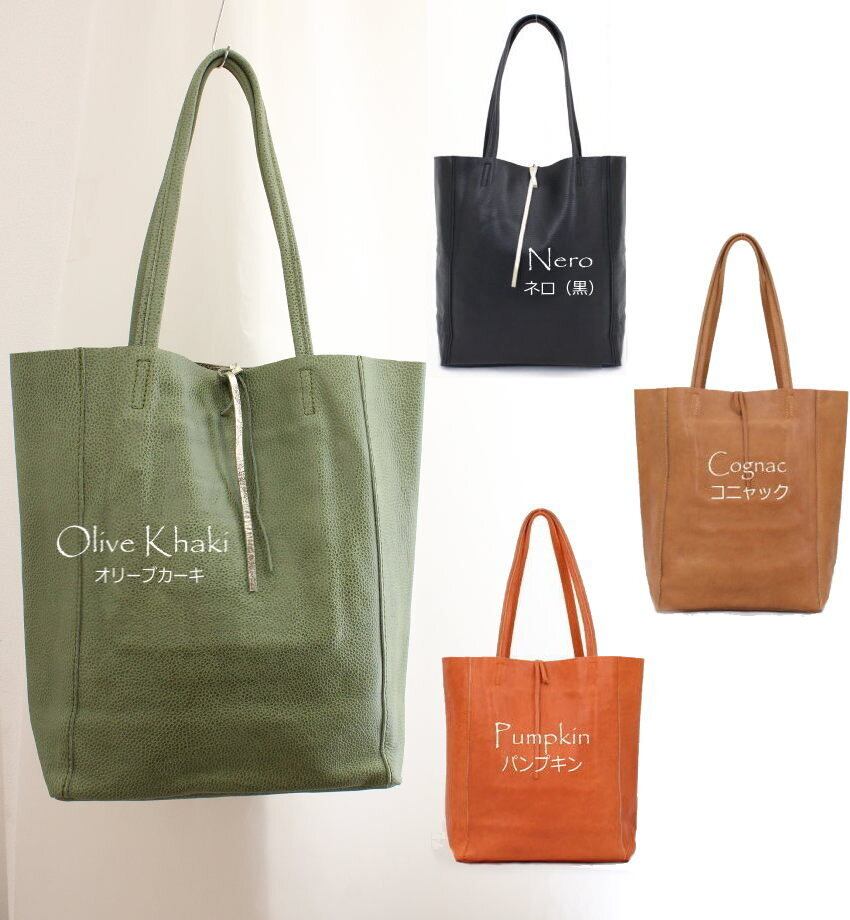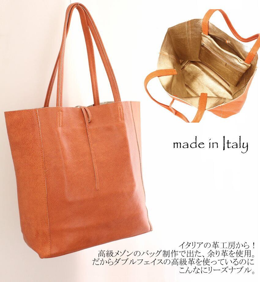 イタリア製 柔らかレザーA4ファイル対応 1枚革トートバッグ 裏面シャンパンゴールド 91789G